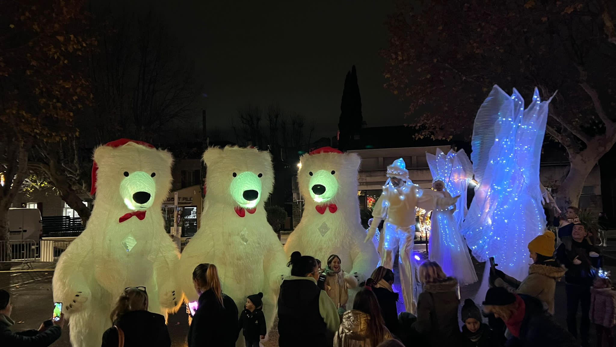 PARADE DE NOEL AVEC OURS GEANTS LUMINEUX DEAMBULATION PELUCHES